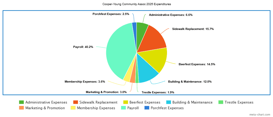 Beyond events, 2025 marked meaningful investment in our neighborhood’s shared spaces, with the Sidewalk Program standing out as a major achievement. Using $18,450 in city and county funds, sidewalks were replaced at 19 homes, improving safety, accessibility, and everyday walkability. We also maintained the beloved Trestle Art, supported the Cooper-Young Arboretum, and launched the Cooper-Young Brighter Blocks adoption program—practical, visible improvements that reflect long-term care for our neighborhood.